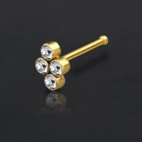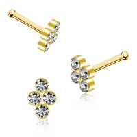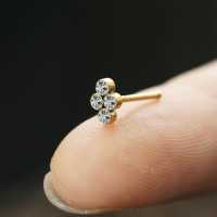 This simple diamond shaped PVD gold coated crystal nose stud is made welding four clear crystals together on top of a 316L steel nose pin. We know these minimalistic nose piercing jewelry pieces are quite popular and make sure to offer them in a few cool variations in our wholesale steel body jewelry collection.