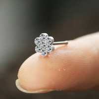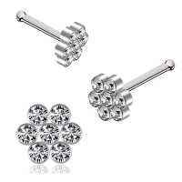 This this large flower shaped crystal nose pin is made by carefully welding seven clear crystals together on top of a 316L steel nose stud. Even though this being quite a large model for nose piercing jewelry it's a stunning nose piercing design that we think will do very well.