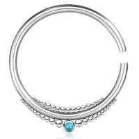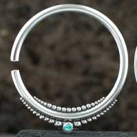 An extremely detailed steel piercing hanger with a crushed turquoise stone inlay that has been welded by hand by our smiths using a steel piercing cluster method. This steel body piercing expander can also double as a flesh tunnel charm.