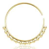 A simple yet elegant PVD gold plated steel piercing hanger that has been crafted by our talented smiths using our innovative steel piercing cluster method. This is a steel body piercing jewelry that can also be used as a tunnel charm for our exclusive assortment of wholesale flesh tunnels.