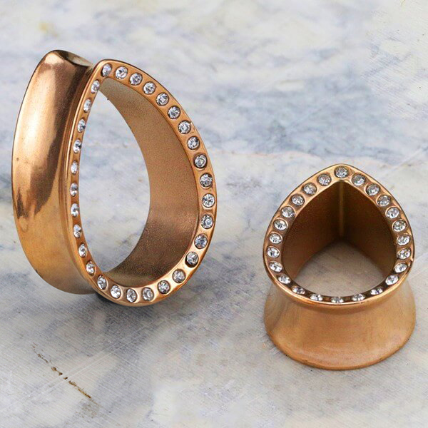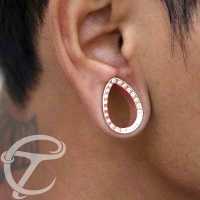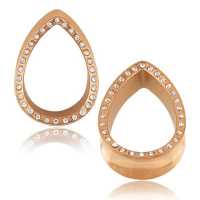 Steel Piercing XPL 006R CZ - Rose Gold PVD Steel tear drop plug / clear crystal is sold