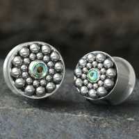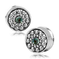 Our steel flesh tunnels are available from small to large gauge piercing sizes and all our body jewelry is designed by our artisans and welded by hand to create innovative pieces of handcrafted steel cluster jewelry with abalone shell inlay. This shelf-friendly stainless steel jewelry design will add flare to any ear piercing. We offer wholesale piercing jewelry for excellent quality at the lowest price possible.