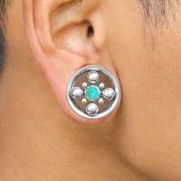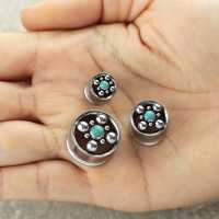 We are very proud with our lightweight steel flesh tunnels with turquoise resin and stone inlay. Our handmade cluster piercing tunnels are great for all sort of body piercings as they are made from hypo allergenic 316L stainless steel. You can pick from an astonishing selection of wholesale steel body jewelry in all types, ranging from our big steel ear-weights to steel plugs and nose jewelry.