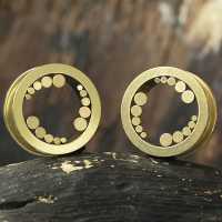 This is a PVG gold coated steel ear tunnel with a geometric triangular pattern welded inside the steel flesh tunnel. With a simple screw system this steel body jewelry is very to wear and make for a very comfortable fit.