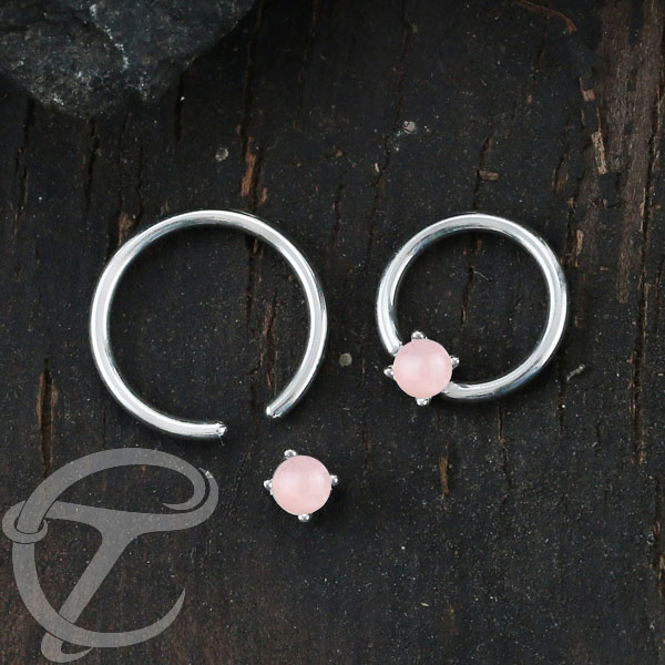 Steel Piercing XR 004X RQ - 316L Steel BCR Prong set rose quarts is sold