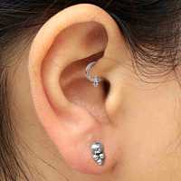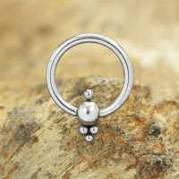 A classic 316L steel BCR piercing where we add a few small steel balls using a piercing clusters welding system. This gorgeous little steel BCR fits perfect in the ear as helix piecing, snug piercing or conch piercing.