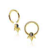 This PVD gold coated captive bead piercing is produced using an innovative steel cluster piercing method and set with synthetic black pearls. Great to use for conch piercing, snug piercing or even as a septum piercing.