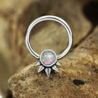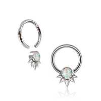 We designed this steel piercing to have a steam punk jewelry feel to it. A spiky 316L steel BCR with a synthetic blue opal inlay. A must buy in our exclusive wholesale steel body jewelry collection.