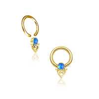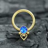 Our wholesale steel body piercing collection is full of treasures such as our selection of captive bead rings and BCR piercings. Here is a PVD gold plated captive bead piercing with a synthetic blue opal and hand welded steel piercing balls and a little steel heart.