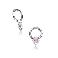 This classic BCR piercing has been made using a captive bead ring, a tiny steel heart and a few steel piercing balls then set with purple cat eye cabochon. Perfect in the ear as a rook piercing or tragus piercing but can also be worn as a nose piercing or eyebrow piercing.