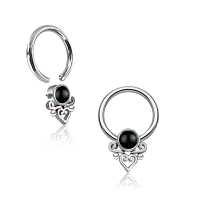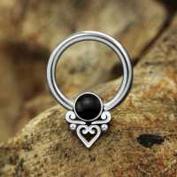 Set with a black onyx cabochon and a few steel parts including a steel heart this captive bead piercing has a bohemian jewelry feel to it. Keep browsing through our full wholesale steel piercing catalogue for more great steel body jewelry and bohemian piercing jewelry styles.