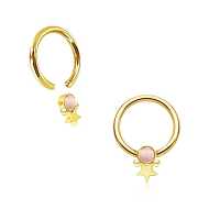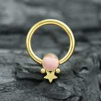 As always the team at Chaotic Trading are doing our best to come up with new exiting steel body jewelry styles and here is another example of a body piercing design success. A PVD gold coated steel piercing BCR with a welded steel star and a rose colored cat eye cabochon.