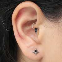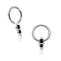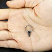 Yet another sophisticated captive bead ring made up of tiny steel piercing balls and a couple of black onyx cabochons expertly welded together. These high end surgical steel BCR piercings are great to be worn as lip piercing, septum piercing or in the ear as daith piercing or rook piercing.