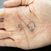 A spiky BCR piercing that has been hand welded by our steel jewelry artisans using our steel cluster piercing method. Set with clear zirconia crystal this is a perfect captive bead ring to be used as a nose piercing, eyebrow piercing or ear piercing.