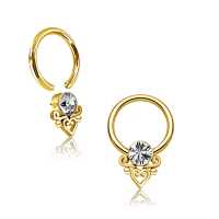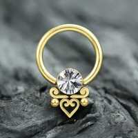 A classic looking PVD gold plated steel BCR with a filigree heart motive that has been designed and fabricated in our own steel body jewelry workshop. One of many exclusive Chaotic Trading jewelry designs that can be discovered on our steel body jewelry wholesale website.
