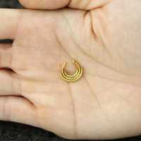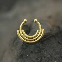 A PVD gold coated septum ring that doesn't require any nose piercing to be worn. This steel septum jewelry has been crafted by hand in our specialist steel body jewelry workshop.