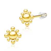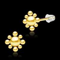 A hand welded 316L PVD Gold plated steel cluster stud earring to be used as a normal ear piercing, ready available in our steel jewelry wholesale assortment.