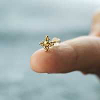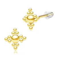 A hand welded 316L PVD Gold coated steel stud earring made to be used as a normal ear piercing, ready available in our steel jewelry wholesale collection.