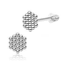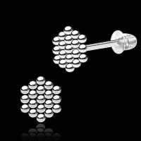 A hand made 316L surgical steel ear stud made with steel balls welded together in a hexagon pattern. Fashioned to be used ear piercing, available in our wholesale steel body jewelry selection.