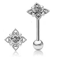 Here is one of our most popular tongue piercing barbells from our hand-made tongue jewelry collection. The classic filigree in combination with exquisite workmanship from our steel jewelry workers makes for an unbeatable piece of steel body jewelry.