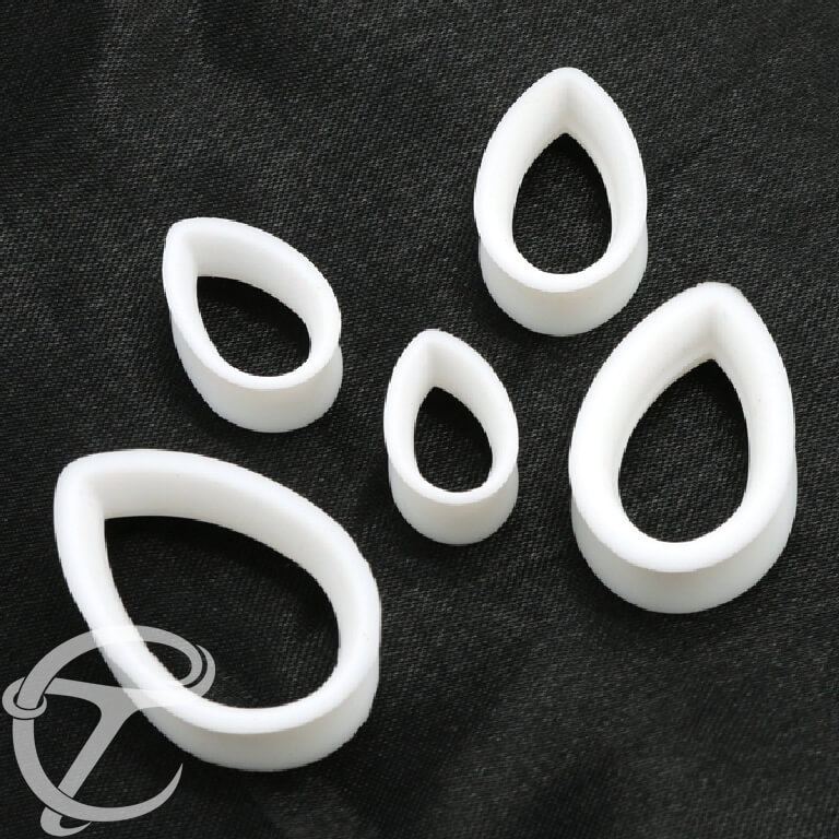 Silicone Jewelry SCPL 003 W - White silicone teardrop tunnel is sold