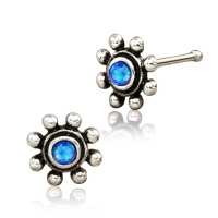 Description: Silver nose pin with blue opal.
