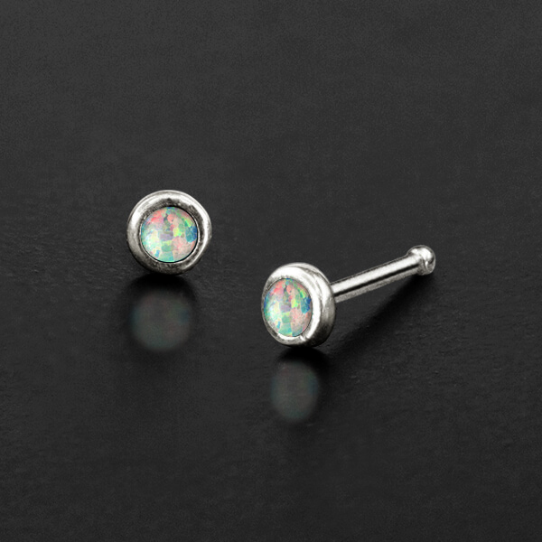 Description: Silver nose pin with white opal.