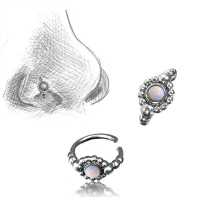 Description: 92.5 Silver nose ring with white opal.