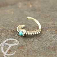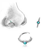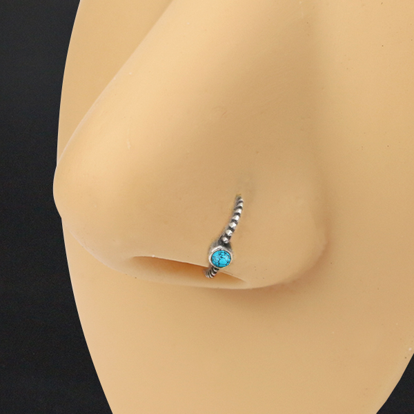 Description: Silver nose ring with turquoise.