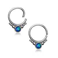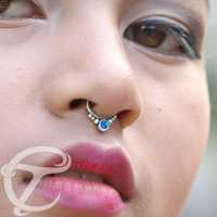 A true artisan’s master craft, this ethnic, septum body piercing is made out of the finest selection of silver, fitted with an eye-shaped blue opal, which represents peace and calmness.