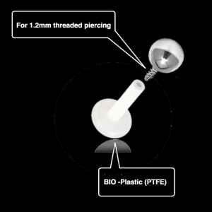 Our exclusive white PTFE Threadless Labret bar is available in the most popular sizes. Used as regular Threadless Labret piercing these are also used for Threadless Tragus piercing as well as Threadless Conch piercing and Threadless Daith piercing.