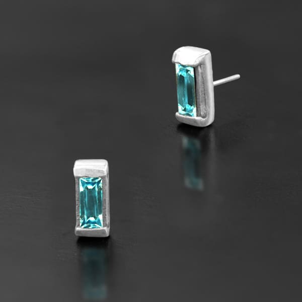 Description: Solid Silver Threadless end with aqua crystal.