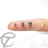 Our Threadless piercing end made from implant grade titanium and set with an aqua coloured zirconia crystal is suitable to pair with our curved and straight Threadless piercing bars and being used as Threadless Eyebrow piercings. Can also be used for Threadless Industrial piercing.