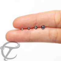 This Threadless piercing end is a Black PVD coated titanium half ball with a set clear crystal. Assemble with our black Threadless piercing labrets and ball labrets and you can make a big variety of Threadless body piercing like Threadless nose piercing and Threadless lip piercing such as Medusa piercing and Monroe piercing.
