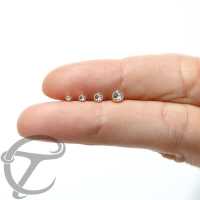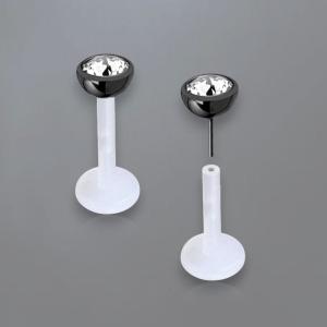 This Threadless piercing end is a PVD Gold coated titanium half ball with a clear zirconia crystal. When assembled with Threadless piercing labrets you can make a big assortment of Threadless body piercing like Threadless nose piercing, Threadless lip piercing as well as Threadless Tragus and Threadless Rook piercing.
