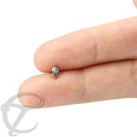 These titanium threadless piercing clusters are hand crafted by our talented artisans. This threadless piercing end is made using an Aqua crystal and is perfect to wear as threadless tragus piercing, threadless rook piercing as well as threadless snug piercing just to mention a few places.