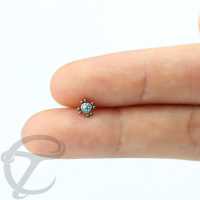 These titanium threadless piercing clusters are hand crafted by our skilled craftsmen and women. This threadless piercing end is made using an Aqua crystal and is perfect to to be worn as threadless tragus piercing, threadless daith piercing as well as threadless snug piercing just to mention a few places.