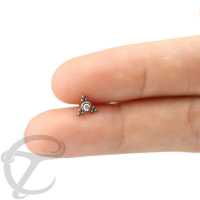 These titanium threadless piercing clusters are hand crafted by our skilled craftsmen and women. This threadless piercing end is made using an AB crystal and is perfect to be worn as threadless tragus piercing or threadless nose piercing as well as threadless labret piercing just to mention a few.