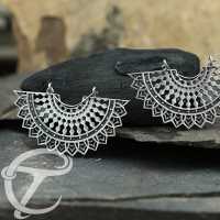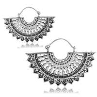 These half circle white brass earrings have been inspired by African tribal jewelry. We know these ethnic white brass earrings will be a stunning addition to our white brass jewelry wholesale collection.
