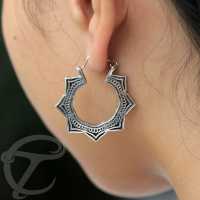 A classic mandala jewelry designed white brass earring also available as a brass earring in our tribal brass jewelry section.