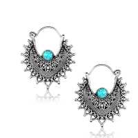 This classic french filigree has inspired us to design stunning white brass earring set with a synthetic turquoise cabochon. This is also offered as a brass earring in our exclusive brass jewelry wholesale section.