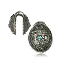 White Brass Collection QEW 060 - White brass ear weight with turquoise and onyx is sold
