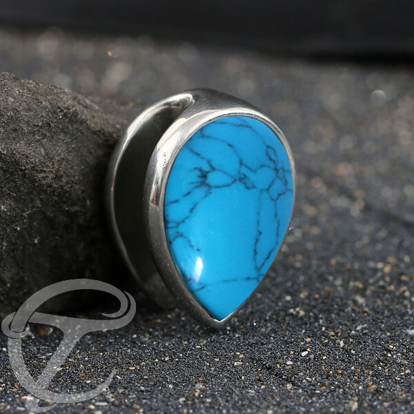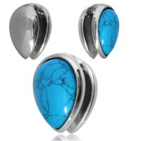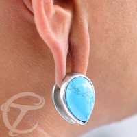 White Brass Collection QEW 076 TQ - White brass ear weight with turquoise is sold