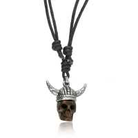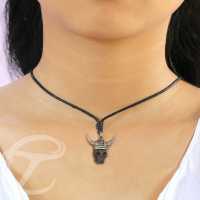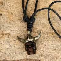 Description: Necklace with white brass hand carved bone skull pendant