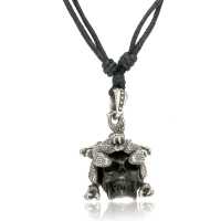 White Brass Collection QNC 064 - Necklace with white brass and hand carved wood skull pendant is sold