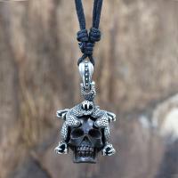 Description: Necklace with white brass and hand carved wood skull pendant