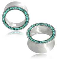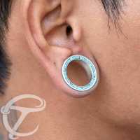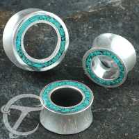 This model of white brass ear tunnel with a crushed Turquoise stone inlay is a classic looking white brass body jewelry. Also available as brass ear tunnel with other available options for the inlay.