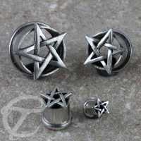 White Brass Collection QPL 342 - White brass pentagram ear plug is sold
