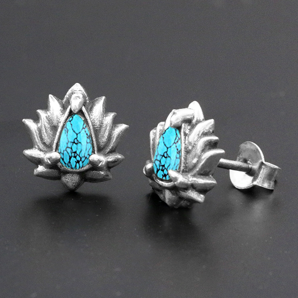 White Brass Collection QST 054 TQ - White Brass ear stud with Steel pin is sold